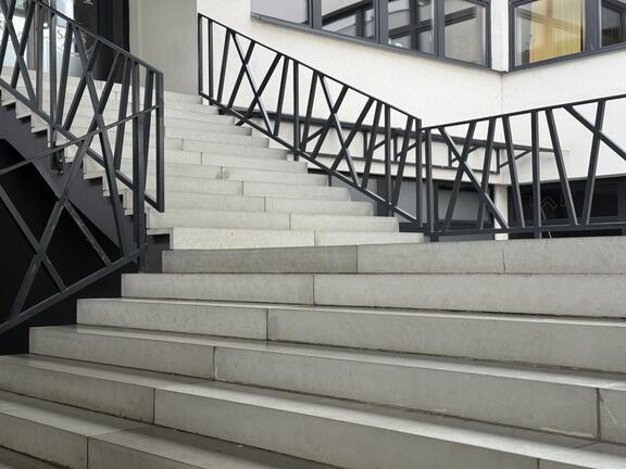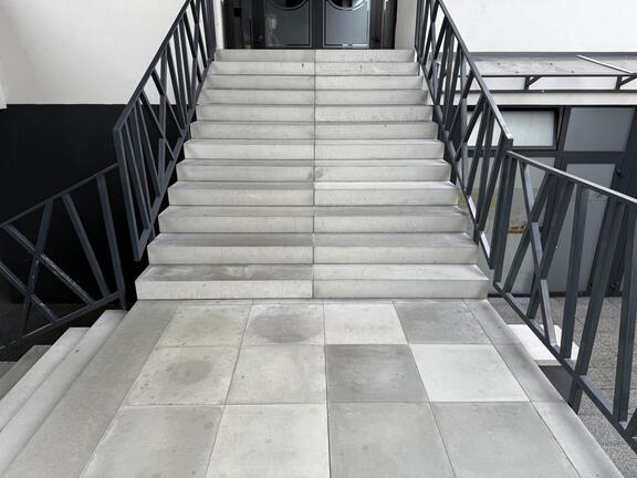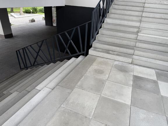 Schodisko typu L-stupne a dlažba z pohľadového betónu