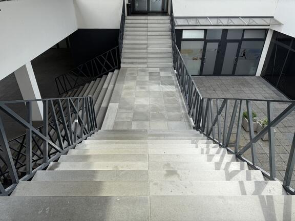 Pre obchodné centrum Družba v Spišskej Novej Vsi sme vyrobili komplexné schodiskové riešenie s L-stupňami a doplnkovou dlažbou. Projekt sa vyznačuje dvojstranným usporiadaním schodiska, ktoré zabezpečuje optimálny prístup z rôznych smerov.
