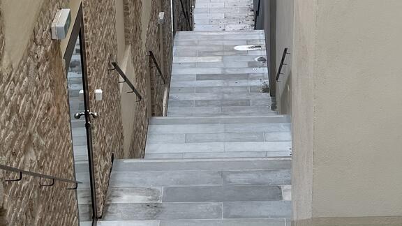 Pre tento veľkolepý projekt sme vyrobili veľkoformátové platne a signalizačné platne ktoré môžete vidieť zo strany od Dunaja. Pre SNG sme dodali taktiež schodiskové stupne tvaru L. Na začiatku a na konci schodiska je štokovaný pásik. Naše schodiskové platne nájdete aj v Hongkongskej uličke.