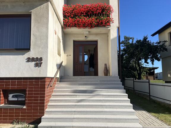 Schody typu nástupnica + podstupnica predstavujú klasické a nadčasové riešenie pre vstupné schodiská rodinných domov. Naša povrchová úprava Excelent sivý dodáva týmto schodom výnimočný estetický vzhľad a dlhodobú odolnosť.