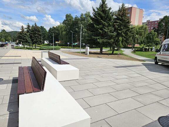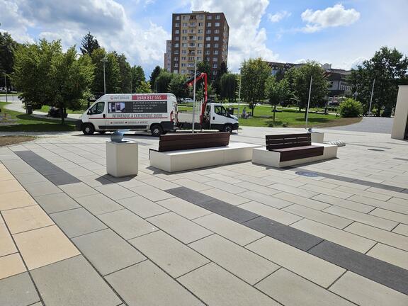 Pre tento projekt sme vyrobili bloky - lavičky z pohľadového bieleho betónu.