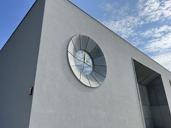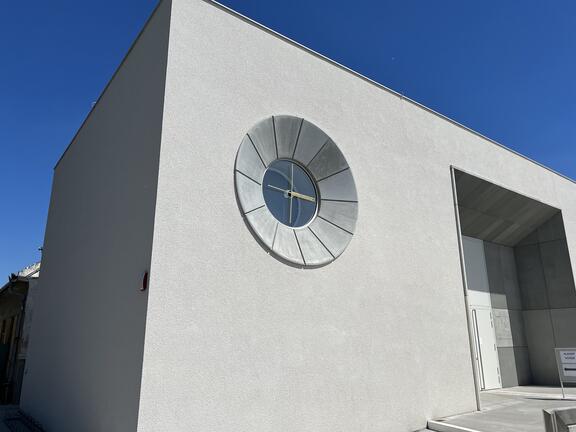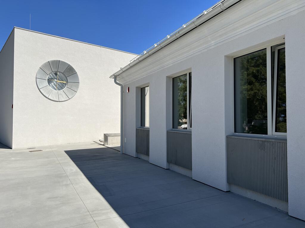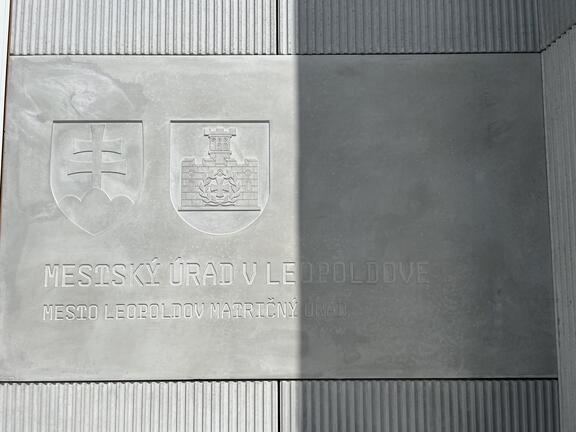 Pre tento nádherný projekt sme vyrobili a dodali fasádne prvky medzi ktoré patria hodiny, obkladové dosky vstupu do budovy, parapety a špeciálne odliatky s nápismi a erbom mesta Leopoldov. Súčasťou našej dodávky sú aj platne pre dve schodiská.